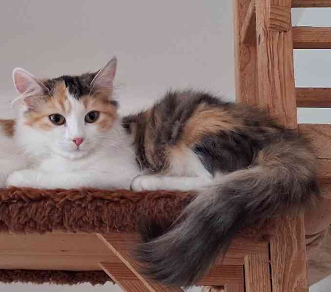 Tříbarevná kráska Lucinka je 4měsíční kočičí slečna. Před lidmi se stále trochu schovává, ale když jí člověk uloví, stulí se do náruče a vrní. S kočkami žádný problém nemá. Vhodná je pouze do bytu a noví majitelé musí počítat s tím, že chvíli potrvá, než si v novém domově zvykne. Lucinka je očkovaná, odčervená. Můžete ji mít za příspěvek na péči.