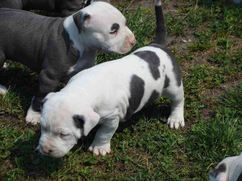 Štěňata amerického pitbulteriéra blue-line (M/Ž). Naše štěňata pitbulteriéra jsou stará 12 týdnů, mají cestovní pas EU, jsou plně očkovaná, odčervená a čipovaná. Štěňata pitbulteriéra jsou přítulná, hravá, ostražitá, mají ráda děti a snadno se cvičí. Ráda chodí na procházky, ale snadno vynechají dlouhé túry. Jsou to skuteční rodinní psi a dají se vzít kamkoli s sebou.