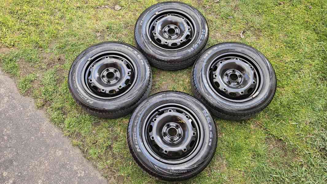 Škoda Fabia letní kola, pneumatiky Nexen 165/70R14 ( vzorek cca 8-7mm) plechové disky, ráfky 5Jx14 5x100 ET35, cena je uvedena za sadu 4 kusů kol, vyzvednutí Kralupy, sada letních pneumatik, disků, na Fabií, prodej, prodám, 14", 165 70 14, 165/70/14, Combi, Kombi.