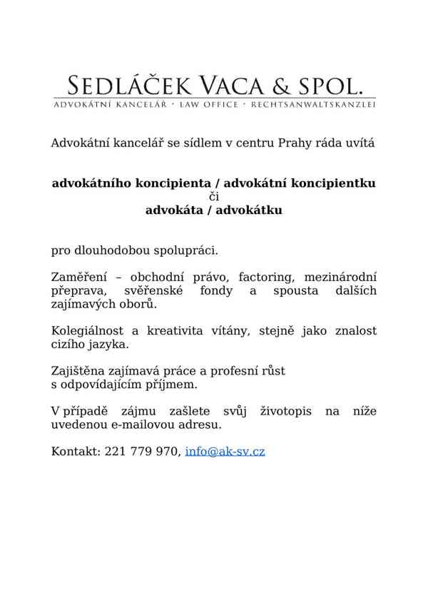 Advokátní kancelář se sídlem v centru Prahy ráda uvítá