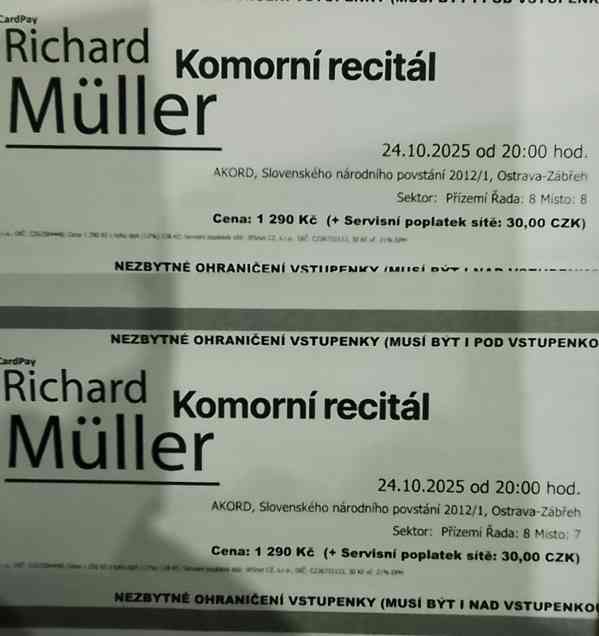 Nabízím 2 vstupenky na vyprodaný koncert Richarda Mùllera v Ostravě.
