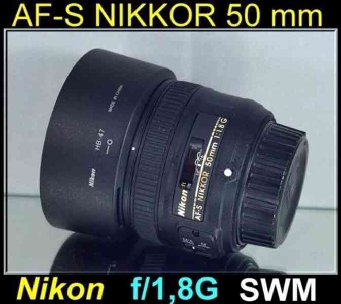 Nikon AF-S 50 mm f/1,8G je pevný světelný 50mm objektiv vhodný pro zrcadlovky Nikon FX i DX. Svou ohniskovou vzdáleností a světelností je předurčen především pro portrétní a reportážní fotografování. Výhodou je ultrazvukový zaostřovací motor (SWM), malá velikost a hmotnost a kovový bajonet.