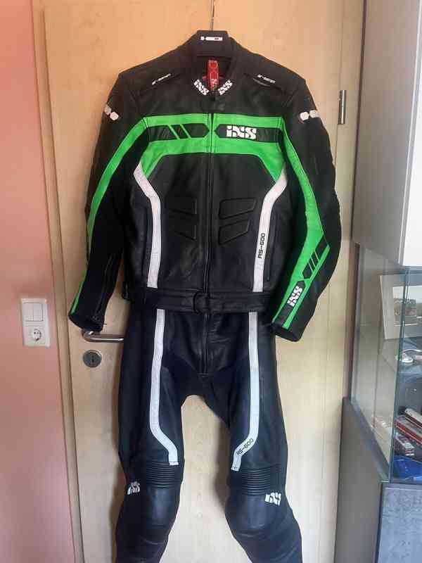 Kožená 2 – dílná kombinéza od značky iXS ve velikosti – 50. Je málo použitá, velmi dobrý stav. Materiál 1,3 mm silná hovězí kůže, prostorné kožené strečové panely, protektory loktů ramen kolen, zesílení švů, zipy v úrovni lýtek, vnitřní voděodolná kapsa pro možnost uložení peněženky a dokladů, atd.