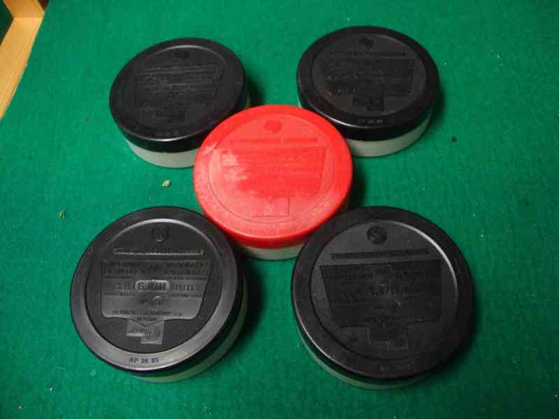 Prodám těchto pět krabiček nábojek do vstřelovače pistole na hřebíky. Krabičky jsou po 100 ks nábojek, nábojky jsou zachovalé, skladované v suchu, použitelné. Cena platí za všechny krabičky dohromady, zvláště krabičky neprodávám, pouze jako celek. Čtyři krabičky černé calibr 6,8/11 mm a jedna červená calibr 6,3/10 mm.