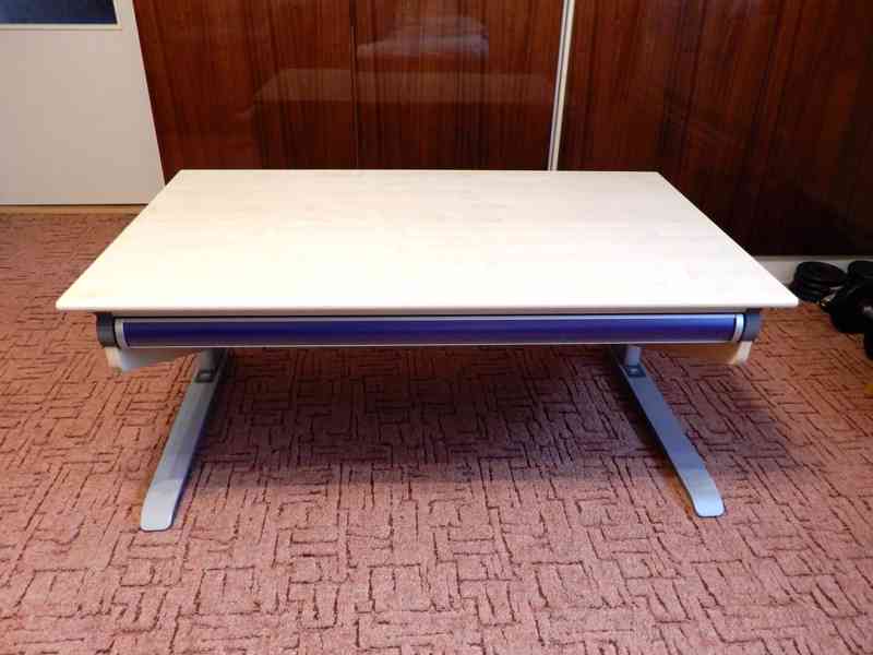 Prodám dětský rostoucí stůl Moll Winner, nastavitelná výška stolu, naklopitelná pracovní plocha, měnitelné barevné prvky, manuální nastavení výšky stolu v 10 úrovních. Je vybaveno dětskou pojistkou. Výškově nastavitelné rozmezí je 53 až 82 cm (odpovídá 112 – 200 cm výšky dítěte/dospělého člověka). Cena: 10.000kč. Osobní odběr.
