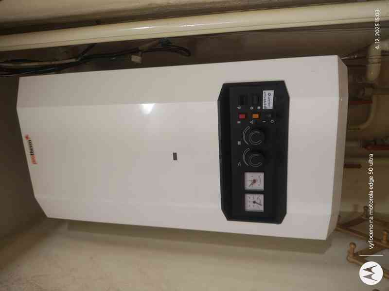 Plynový kombinovaný (= s průtokovým ohřevem teplé vody) závěsný turbo kotel Protherm 24 KTV, foto štítku. S návodem a všemi doklady a informacemi, které byly při jeho koupi a uvedení do provozu. Stále v provozu-mohu předvést. Bude vyměněn za kondenzační a tak prodávám. Nedostatky : neukazuje teplotu, nereguluje teplotu teplé vody, přídavný napouštěcí ventil . Nová expanzní nádoba za 1800 Kč. Brandýs nad Labem.