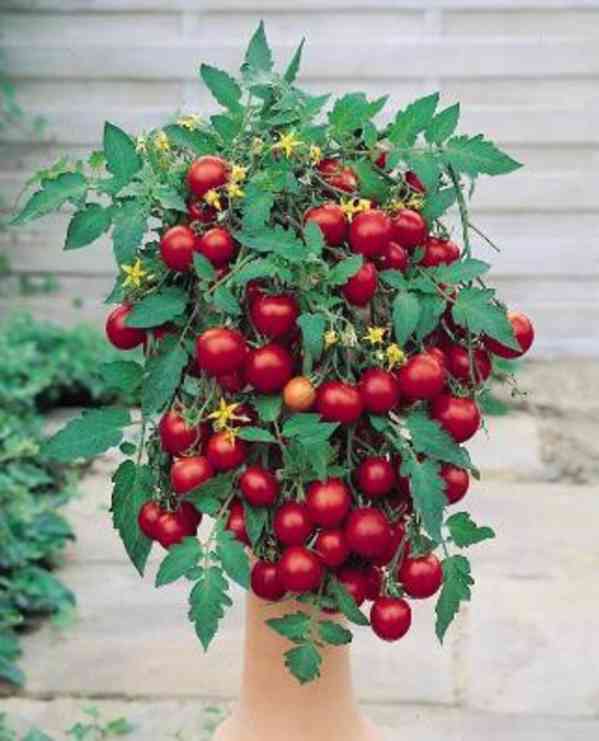 Rajče Tumbling Tom red převislé (Lycopersicon lycopersicum) je keříčková (determinantní) odrůda převislých cherry rajčátek určená zvláště k pěstování v závěsných nádobách, nebo v samozavlažovacích truhlících. Rajčátka působí stejně dekorativně na terase, jako na talíři. Jsou vhodná jako přízdoba pokrmů, do salátů, ale i k přímé konzumaci. Jejich velikost ocení zvláště děti, které se mohou zároveň i podílet na jejich pěstování a sklizni. Balení obsahuje 10 semen za 46,- Kč.