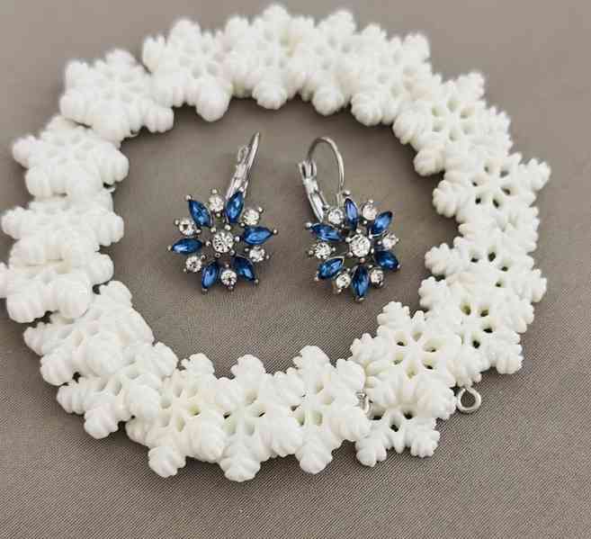 Jemné náušnice ve tvaru vločky s průhledným a světle modrým umělým zirkonem.