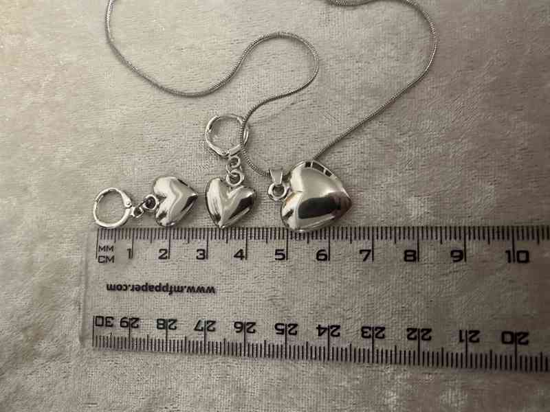 Sada Ocelové srdce" - pro každý den a silné, sebevědomé ženy Tento moderní a elegantní set obsahuje náušnice a přívěsek ve tvaru srdce z odolné oceli. Každý prvek dodává jemný třpyt a sofistikovanost, vhodný pro každodenní nošeni.