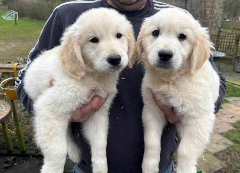 Dvě štěňata skromného zlatého retrívra jsou nyní k dispozici. Jsou dobře vycvičená a milují hraní s dětmi a dalšími domácími mazlíčky. Jsou veterinární kontrolou a doručí se spolu s veterinárními dokumenty a veterinární knížkou. V případě zájmu mě kontaktujte s fotografií štěněte.
