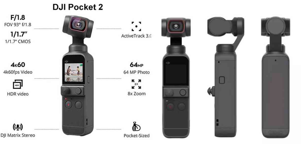 DJI Pocket 2 je kompaktní kamera se stabilizátorem, která kombinuje mobilitu a stabilitu v jednom zařízení. I přes své malé rozměry disponuje 3osu stabilizovanou kamerou s 1/1.7" senzorem a 4 mikrofony. Nabízí celou řadu funkcí jako ActiceTrack 3.0, Zoom, Panorama, Timelapse, Soundtrack,DJI Matrix Stereo a 64 MPX statický záběr.