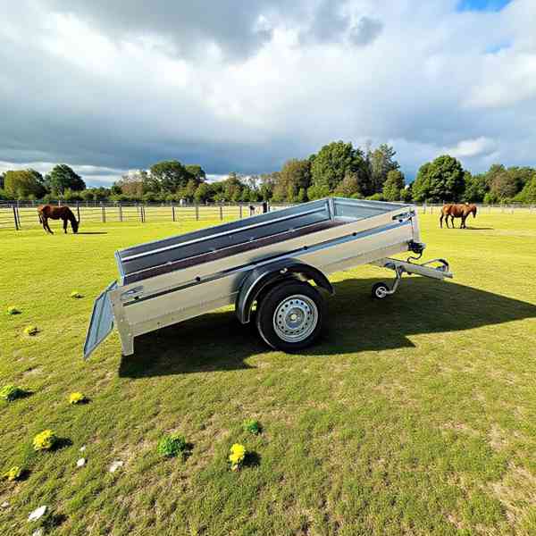Nový profesionální přívěsný vozík ČESKÉ VÝROBY - EASY 270 -PEVNÝ SVAŘOVANÝ RÁM - křížová výztuha - odnímatelné bočnice na plato - pro náročné použití. řidičák skupiny B.