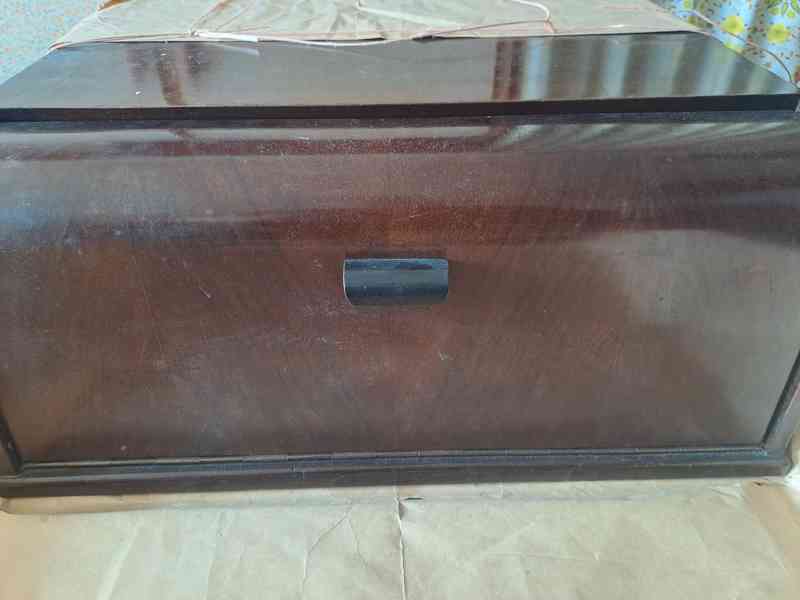 třešňová dýha, kol. r. 1850, dýhován i zezadu, může tedy být postaven v prostoru. výška 78 cm, rozměr desky je 93 x 64 cm