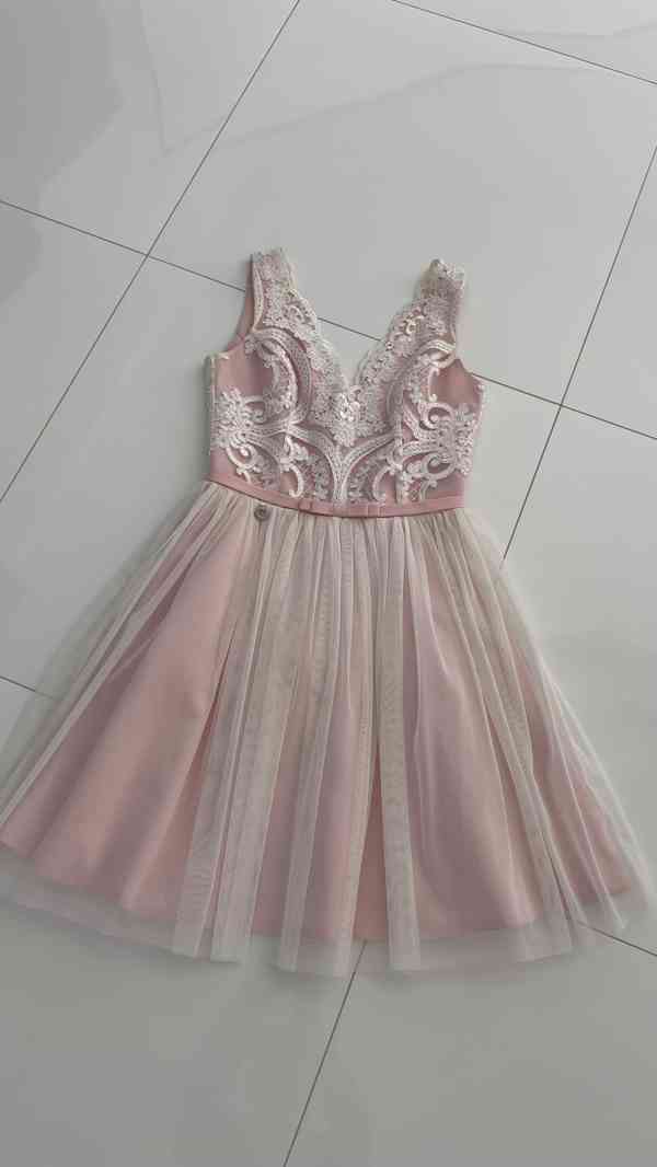 Nabízím dámské, dívčí společenské šaty, vel:36, použité pouze 2x v tanečních. Šaty bez poškození, jako nové. Vhodné na divadelní večery, taneční, svatby, maturitní ples atd. Původní cena 2500kč, nyní 500kč.