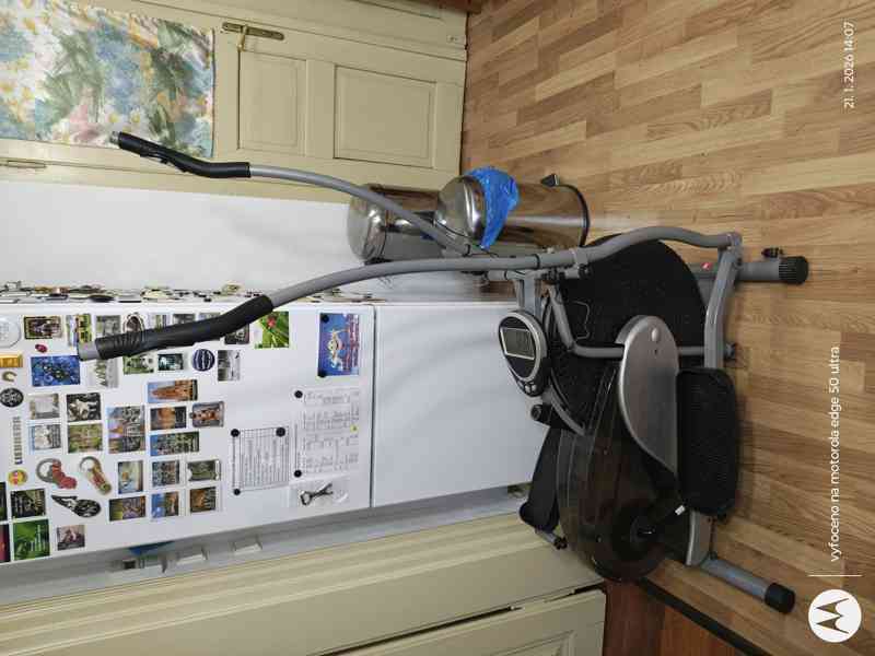 Orbitrek (eliptický trenažér, elliptical, crossový trenér) ORBITREK PLATINIUM plně funkční. Maximální váhové zatížení je 120 kg, rozměr dxšxv 95x50x140 a 150 (nastavitelná výška), výška 70 po odejmutí madel pro přepravu, plynulá regulace zátěže, tichý chod, možnost zpětného šlapání, měření různých parametrů na displeji, madla lze umístit do stabilní polohy, pohodlná manipulace díky kolečkům, podrobný návod k použití. Brandýs nad Labem.