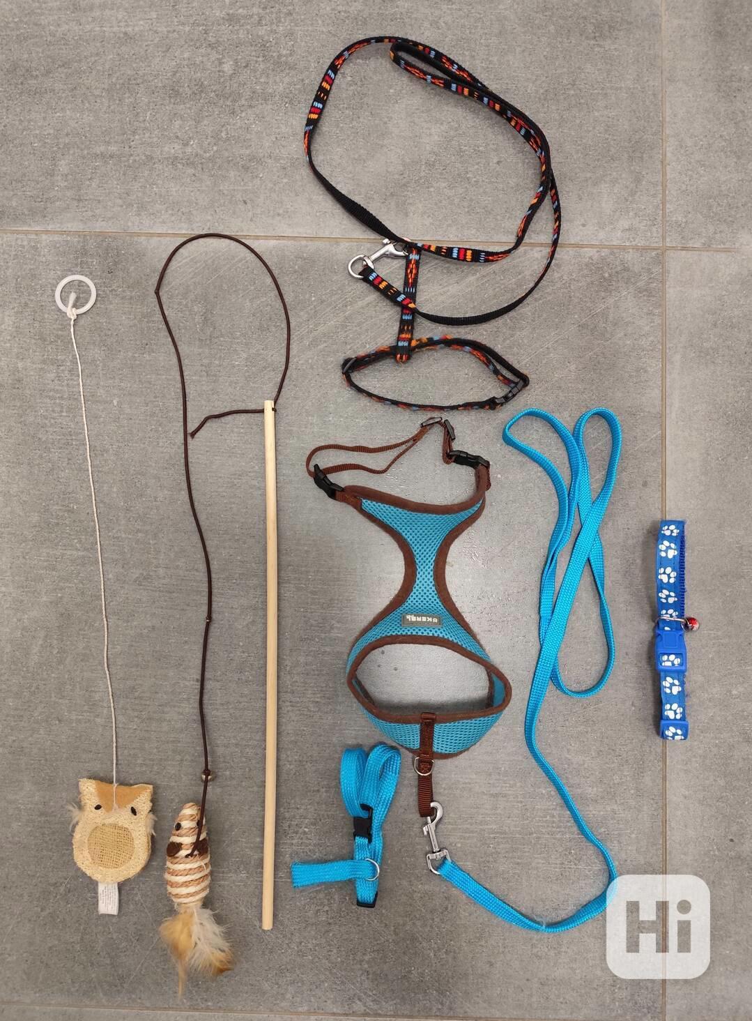 Prodám nový Kerbl postroj pro kočky s vodítkem 110 cm se zapínáním na klip, postrojek pro kočku s indiánským potivem a hračky, viz foto. Cena celkem 220,-Kč.
