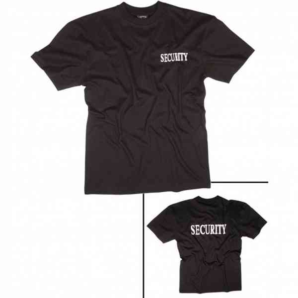 S nápisem Security na hrudi i na zádech.