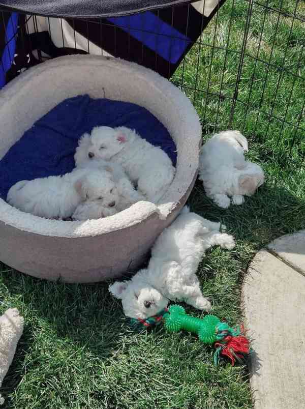 Bišonek frisé. Nabízím k Na prodej štěňátka Bišonka Frisé s PP. Jedná se o moc hezká krytí. Tatínek import Anglie. Štěňátka jsou odchovávaná v domácím prostředí, zvyklá na děti, ostatní pejsky, běžný domácí ruch. Štěňátka odchází do nového domova po druhém očkování. Pro více informací mě kontaktujte na telefonu nebo e-mailu.