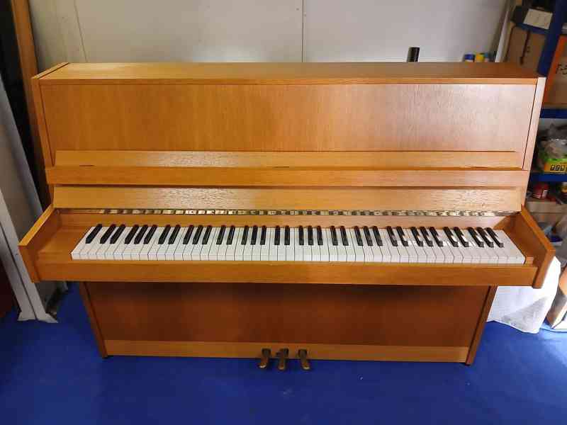 88 - kláves. model /plný rozsah/, Moderátor umožňuje hru ve večerních hodinách bez rušení okolí /vhodné i do bytových domů/, výška 109cm, šířka 145cm, povrch světle hnědý satén. Pianino má pěkný, klasický s mohutný tón a je možné si jej kdykoliv po tel. domluvě přijít prohlédnout a vyzkoušet včetně víkendů. V ceně je zahrnuta záruka a doprava po ČR. Cena nového byla 127.000 Kč.