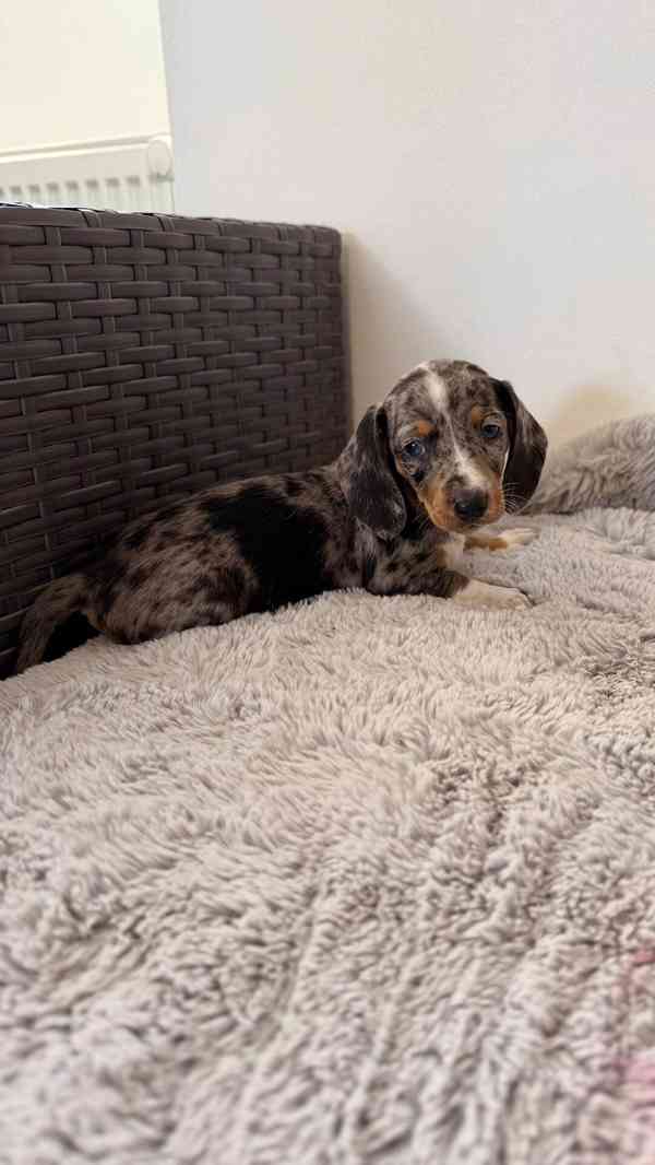 💙 ZBÝVAJÍ JEN 2 KLUCI A 1 HOLKA 💙 Máme 5 nejroztomilejších a nejvzácnějších barevných štěňat maltipoo. Náš krásný rodinný mazlíček Dottie má 4 roky a je to tříbarevný blue merle maltipoo s čokoládovou barvou, pocházející ze zdravých, skvělých linií. Je milující maminkou svého druhého a posledního vrhu maltipoo plemene F2b: Holka 1 - blue merle, s čokoládovou barvou (černá skvrna na levém oku). Je to malý bojovník 😍 je to docela mohutný opiček, ale není to vůdce smečky, to je naše holčička, ale snaží se mu usnadnit život. Kluk 2 - fantomový tříbarevný černý, čokoládová merle. No, je to rozhodně problémový pes! Je o něco menší než merle, ale vynahrazuje to svou povahou 😊 Miluje hračky a přetahování a vždycky se přijde pochlubit. Pejsek 3 - fantomový tribarevný černý, čokoládově merle (bílý pruh na bradě). Je tak roztomilý, pohodový, robustnější než jeho fantomový bratr a prostě se unáší proudem, velmi pohodové štěně! Pejsek 4 - modrý merle, také nosí čokoládovou kůži. Táta je oblíbený Cheeky Chicco z West Midlands a je to čokoládový Phantom Toy pudl. Je registrovaný v Kennel Clubu ✅ měří 28 cm, váží 4,5 kg a pochází z RUSKÝCH šampionských linií 🇷🇺. Je 🧬 DNA testován na zdraví: DEGENERATIVNÍ MYELOPATIE - čistá PRCD-PRA - čistá WILLEBRANDOVA CHOROBA TYPU 1 - čistá NOVINKY - čistá. Je to osvědčený chovný pes, který produkuje úžasná, zdravá štěňata.