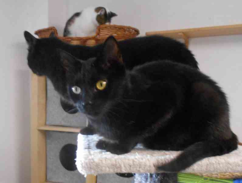 Velmi mazlivý a hravý, hodný 4,5měsíční černý Damiánek hledá domov, stejně jako jeho sestřička černá Dianka. Jsou zvyklí na kočky, hodné pejsky, na děti, na běžný ruch domácnosti. Jsou čilí, hraví a potřebují ke spokojenosti zvířecího parťáka (možná sestřičku Dianku). Potom i malé kotě vydrží celý den bez svých lidí. Damiánek je očkovaný, odčervený a můžete ho mít za příspěvek na péči. Přímý kontakt nikola.smile@seznam.cz Nikola Melicharová 774 421 364 Železná Beroun