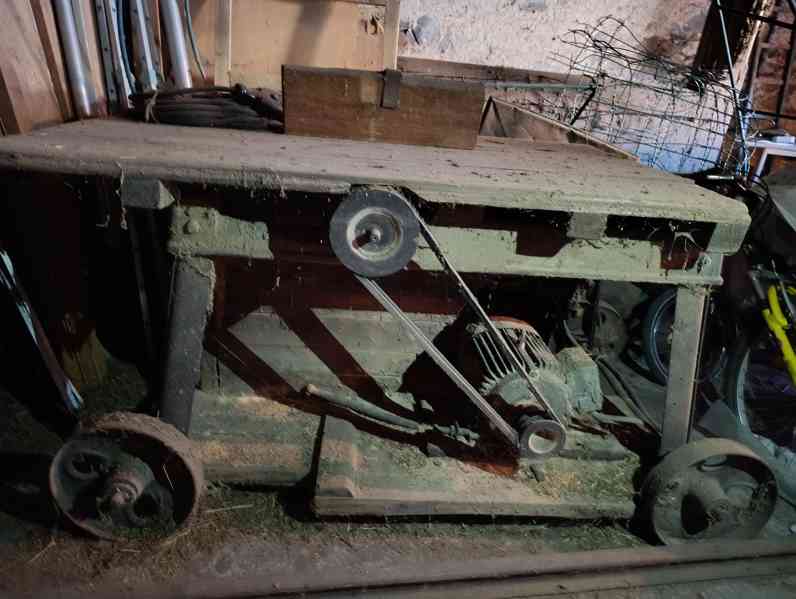 Cirkulárka se štípačkou - historický stroj, silný, plně funkční + pilové kotouče. Cena je k jednání: 725865886