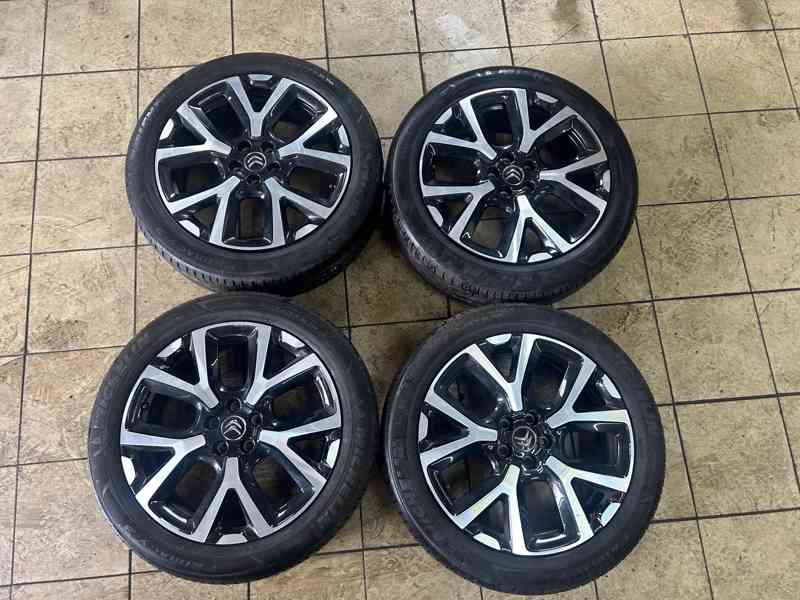 Prodám originální hliníkové kola Citroen C5 Aircross R19 - 98.242.437.77 Rozměr je 7J19 et 38, rozteč šroubu je 5x108, středová díra je 65,1mm. Obuté na letních pneumatikách Michelin 205/55 R19 97V . Vzorek cca 5mm rv 0121. Kola jsou pěkná neodřená zkoušená na vyvažovačce. Pasující i na vozidla Peugeot. Možnost zaslání po celé ČR a SR. Cena za celou sadu je 15000,-