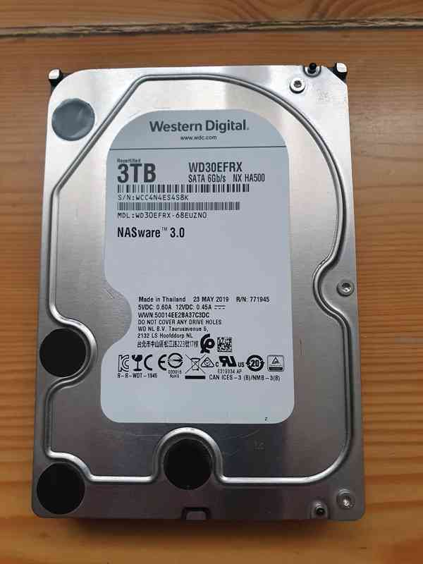 Prodám pevný disk Western Digital NASware 3.0 3TB 3,5" SATA 6Gb/s. Plně funkční, otestované, výpis smart mohu zaslat. K dispozici 2ks.