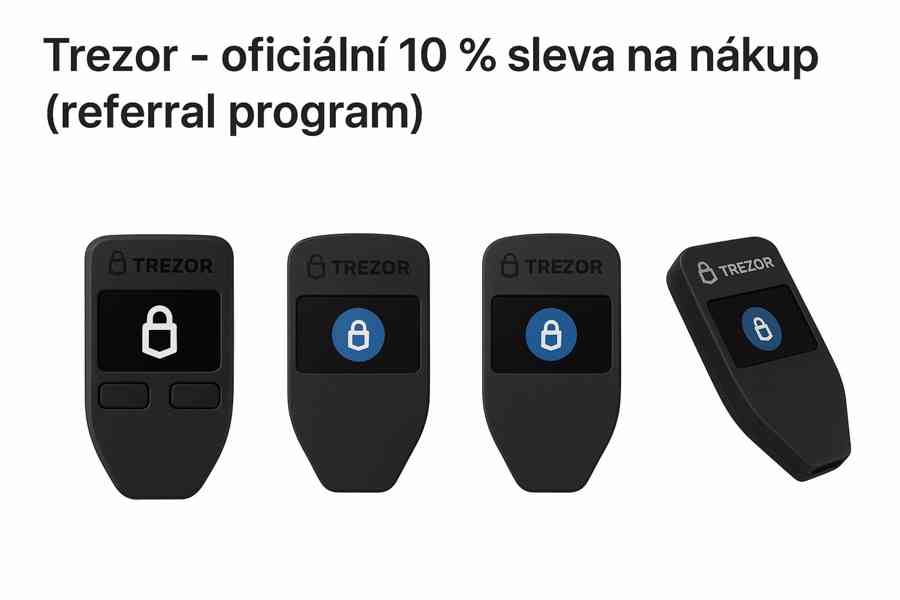 Nabízím 10% slevu na nákup nové Trezor hardwarové peněženky přes oficiální Trezor referral program. Zájemcům pošlu odkaz e-mailem
