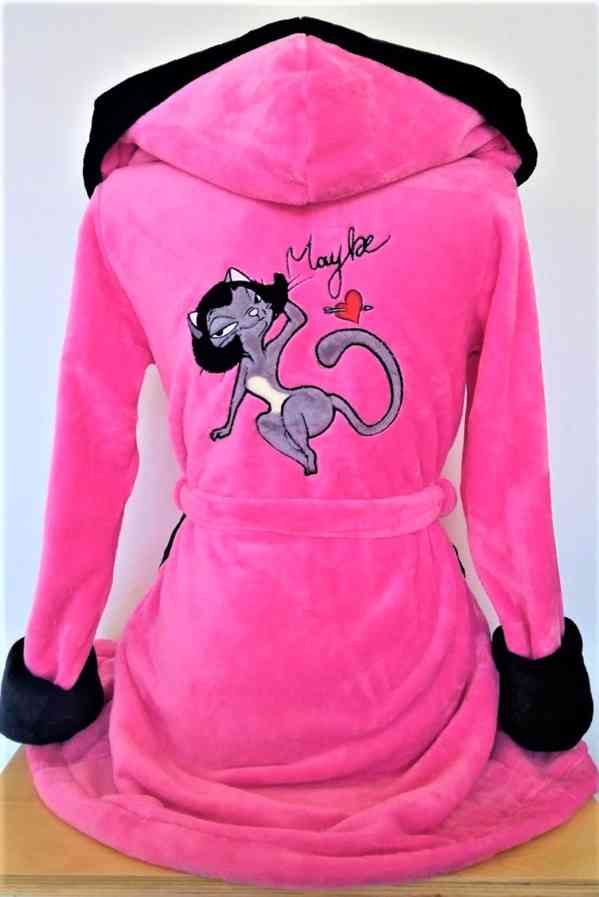 Krasny kvalitny damsky zupan s vysivanym motivom vzadu. Kratky teply zupan usity z prijemneho makuckeho materialu na dotyk. Zupan zahreje. Dlzka zupanu od ramena je 87 cm. Velkost M, Zupan ma kapucnu, vrecka a opasok.