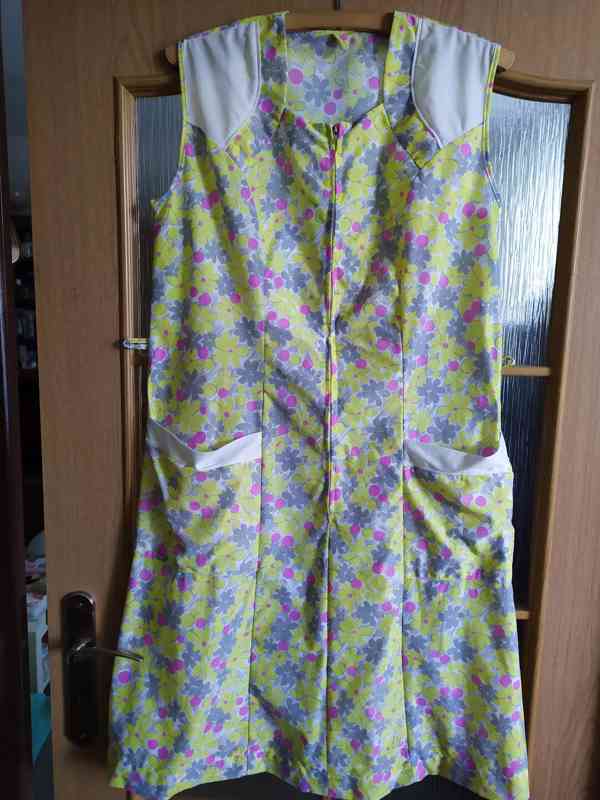 !Dámská kvalitní zástěra s kapsami vpředu na zip.Délka je cca 102.cm.Barvičky jsou hezky pastelové.Pc:200.Kč.Zašlu klasicky poštou nebo zásilkovnou či balíkovnou