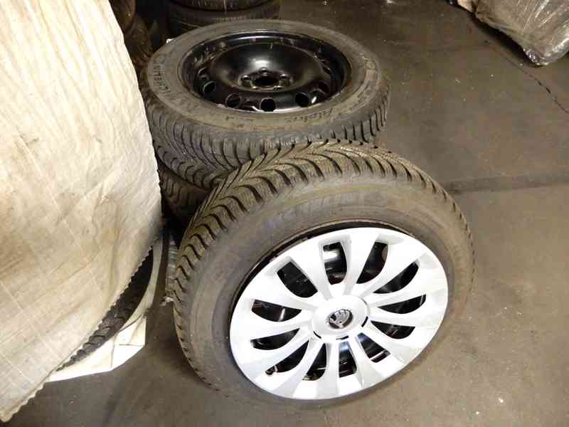Prodám originál plechová zimní kola 15 " Fabia 3 / Rapid, 5x100 / středová díra 57,1 - 6Jx15 ET38 obuté pneu MICHELIN ALPIN 185/60R15 88H, výroba DOT 1918, hloubka dezénu 4x6mm, originál poklice. Cena za sadu: 5000kč.