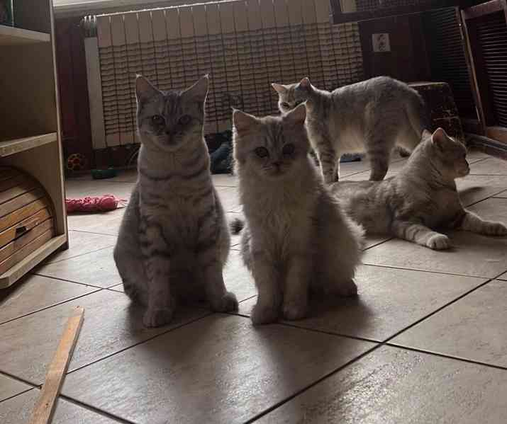 Nabízím k prodeji půlroční nádherná britská koťata – 3 kocourky a 1 kočičku (stříbrná tečkovaná)