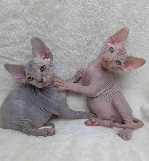 Máme dvě nádherná koťátka sphynxe, která hledají své milující domovy navždy. Jsou připravena odjet do svého nového domova 🏠