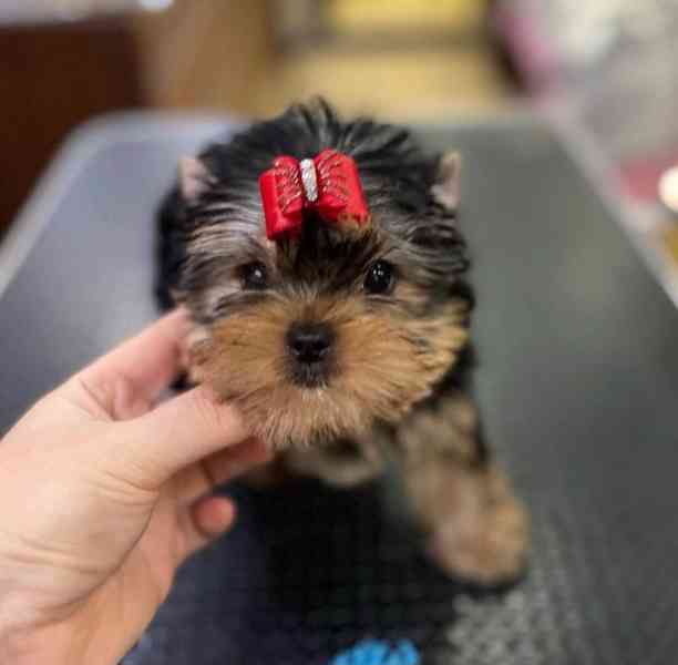 K dispozici čistokrevná štěňata jorkšírského teriéra. Mají registrační doklady CKC a AKC a záznamy o prvním očkování. Štěňata jsou také odčervená a mají odstraněny drápky. Mají krásné oči a nádherně zbarvenou srst! Kromě roztomilého vzhledu mají úžasnou osobnost, kterou neustále projevují. Pokud máte o tato štěňata zájem, neváhejte mě kontaktovat pro více informací a fotografií.