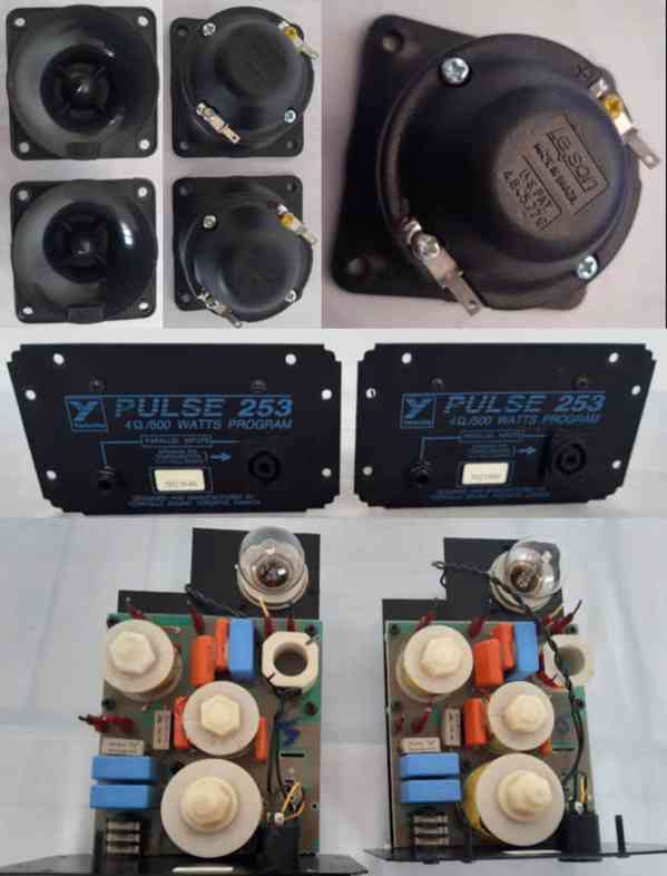 2 ks. výškových reproduktorů Le-son - Made In Brazil - 150 W/ 4 ohmy. US.PAT 4.845.776. Cena za 1 ks. 399 Kč. + 2 ks vyhybek 4ohmy/500 W PULSE 253 Made In Canada. Třípásmová. Z reprobeden Y - Yorkville. Cena za 1 ks. 999 Kč. Perfektní stav. tel. 797 864 944 email: patmatvm@email.cz