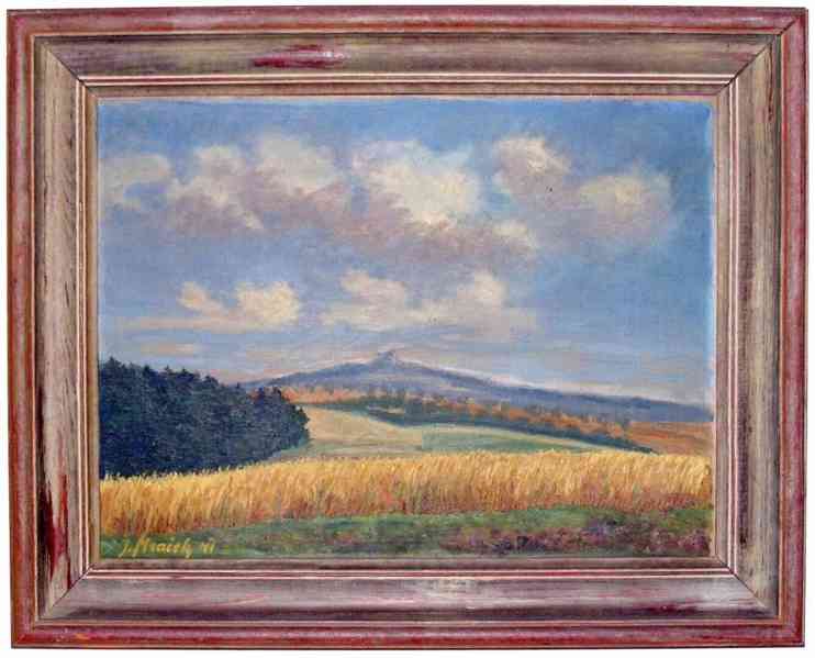 Prodám olejomalbu na kartonu, autor Josef Mraček, signováno 1938, rám 50x36 cm.