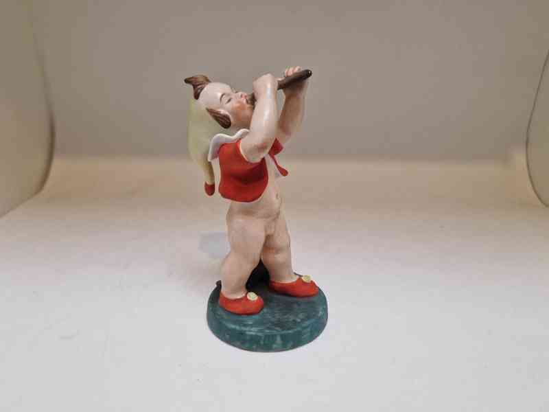 Krásná Art Deco porcelánová soška, Děvčátko s píšťalou - značeno, Marie Fischerová Kvěchová, Březová u Karlových varů, 1 pol 20 stol.