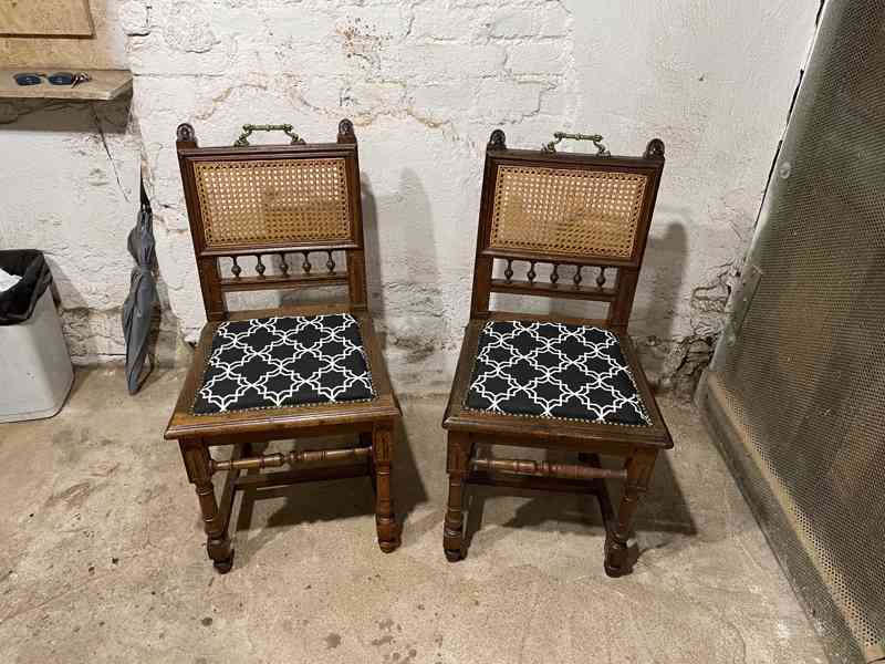 Prodám 6 ks starožitných kožených židlí, v roce 2017 byly znovu přečalouněny kůží.