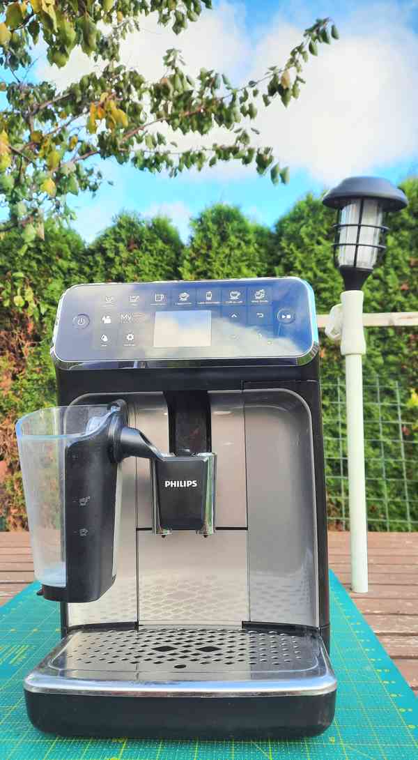 Technický popis: příkon 1 500 W • tlak 15 barů • intuitivní TFT displej • inovativní napěňovač mléka LatteGo • 1,8L nádržka na vodu • 275g zásobník na kávu • keramický mlýnek na min 20000 šálků! 12 nastavení hrubosti mletí • příprava 2 šálků • odnímatelná spařovací jednotka • použití mleté kávy • snadné čištění • 2 uživatelské profily + host • nastavitelné funkce • hmotnost 8,2 kg • rozměry (š × v × h): 24,6 × 37,1 × 43,3 cm.