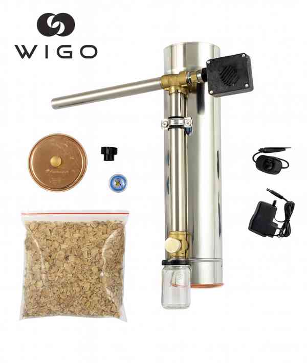 WIGO BASIC - Ocelový tubus generátoru, ocelové vedení kouře s mosaznými spoji, měděné dno a víčko tubusu
