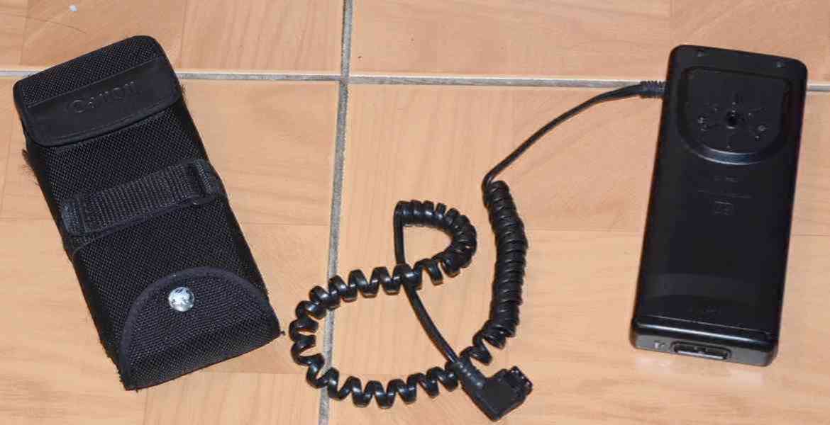 Součástí aukce je: Canon CP-E3, pouzdro, Držák na 8 AA baterií