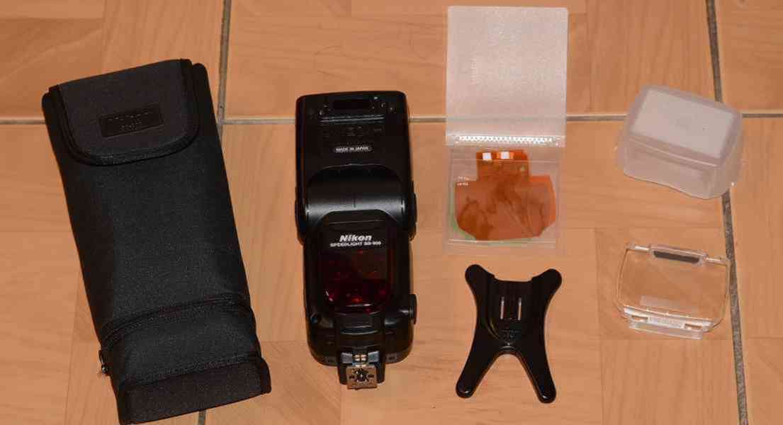 Součástí aukce je: Blesk SB-900, stojánek pro blesk AS-21, difúzní nástavec Nikon SW-13H, sada barevných filtrů SJ-900, držák filtru SZ-2, měkké pouzdro SS-900.