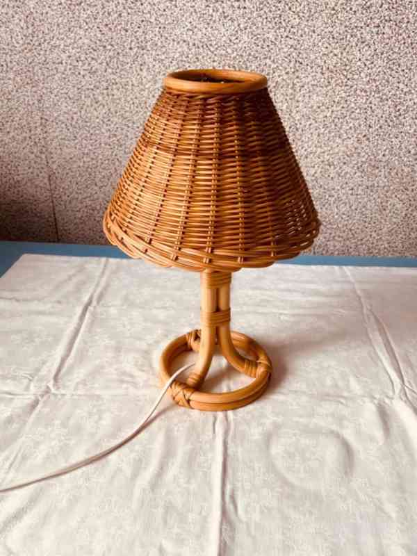Nabízím lampičku s proutěným kloboukem. Výška je 38cm, průměr klobouku je 25 cm a délka kabelu je 180cm.