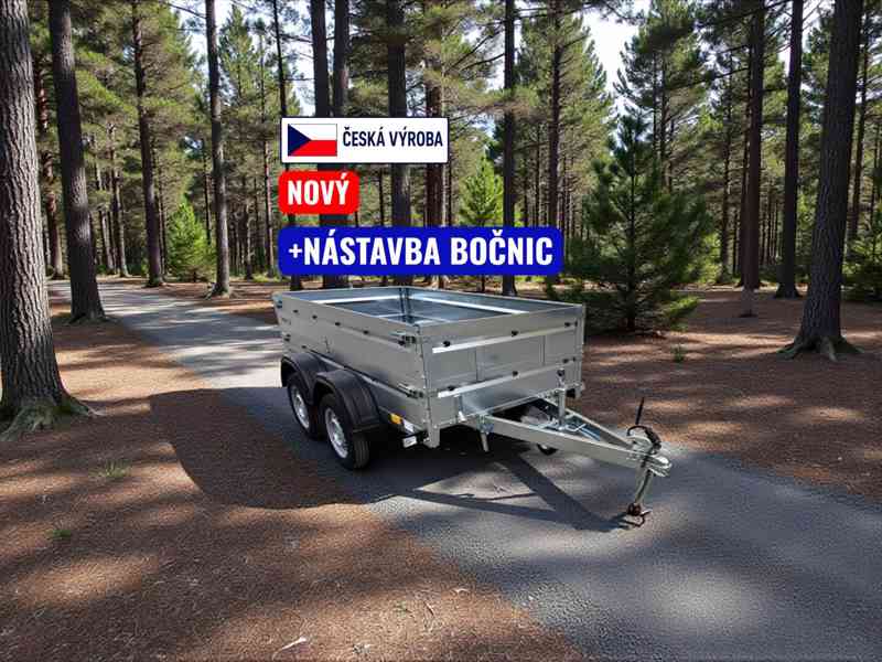 NOVÝ - ČESKÝ multifunkční přívěsný vozík Simply 260T + nástavba bočnic. 2x značková náprava 750Kg – vyšší konstrukční nosnost. Řidičák sk. B.