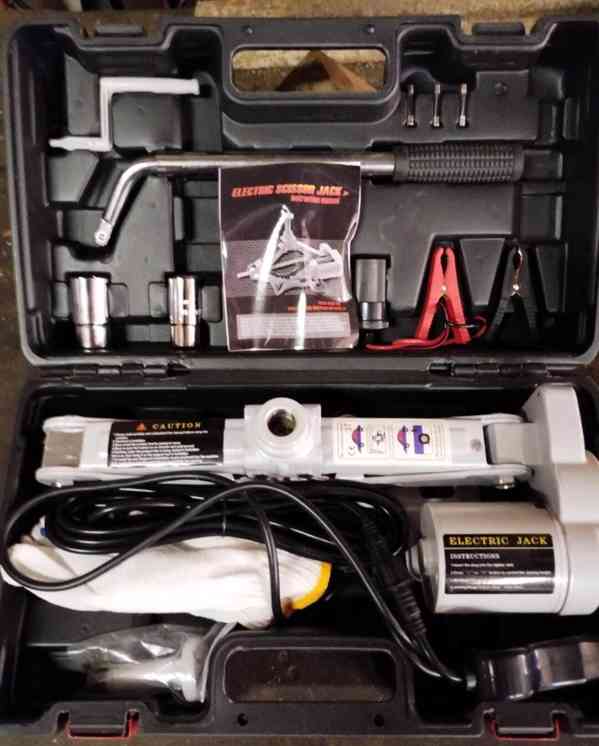 - Bohaté příslušenství: teleskopický klíč na kola, pevnostní gola ořechy, rukavice, klička pro manuální pohon, náhradní pojistky, pevný plastový kufr.