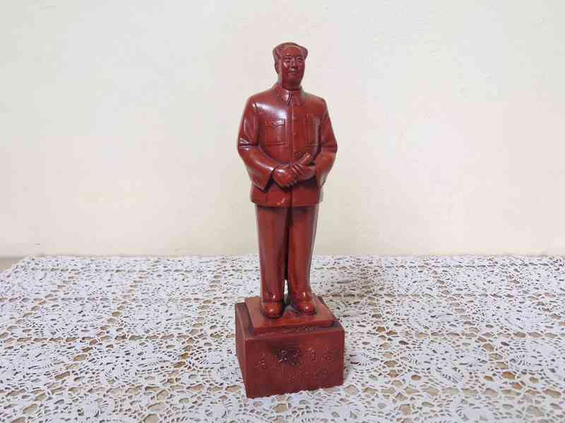 Zajímavá soška Mao Ce Tunga, starý kvalitní plast, značeno a pravděpodobně i číslováno, pěkné zpracování - Čína kolem pol. 20 stol.Rozměry: výška 33cm, fotky jsou o něco světlejší, soška vypadá lépe v reálu, je o něco tmavší.