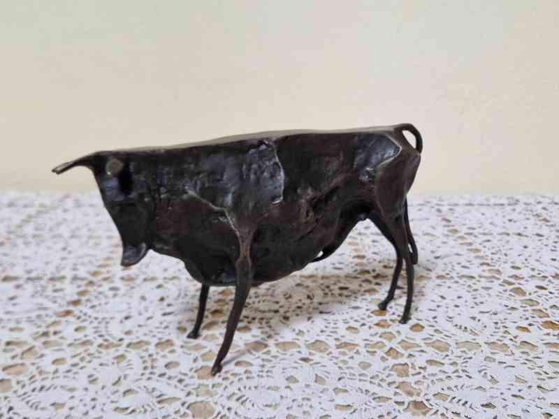 Stylová soška Býk, kubismus, patinovaný bronz, Pablo Picasso, signováno, novodobý odlitek.Rozměry: výška 14cm, délka 23,5cm
