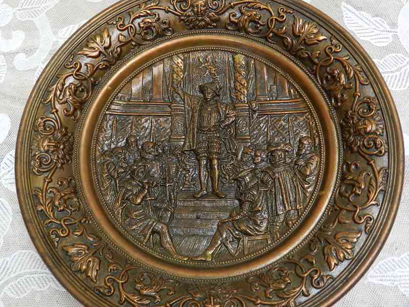 Luxusní obří Talíř s Vojáky, keramika s měděným povrchem - galvanoplastika, precizní zpracování - Johann Maresch, 3 třetina 19st.Rozměry: výška 6cm, průměr 37cm, hmotnost cca 1800g.