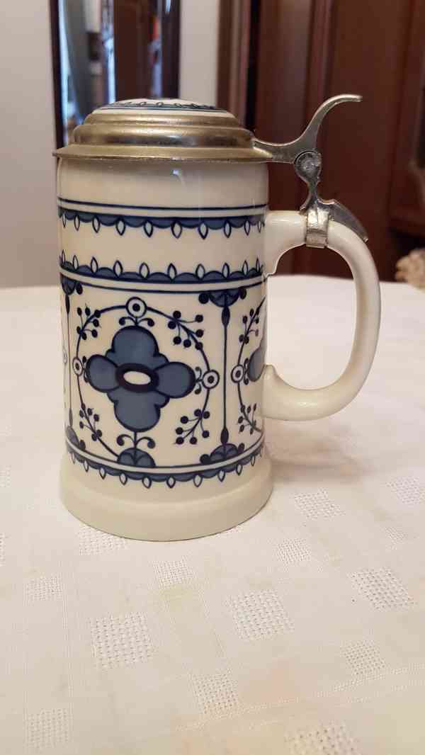 Prodám zcela nový pivní porcelánový krýgl (holba) bílý, zdobený kobaltovou modří s cínovým víčkem kombinovaným s porcelánovou výzdobou. Výroba NDR. Výška 17 cm. Krásný a praktický dárek. Osobní předání na Praze 3, nebo zaslání přes Zásilkovnu. Volejte 770 630 523, nebo pište na morgiana007@gmail.com